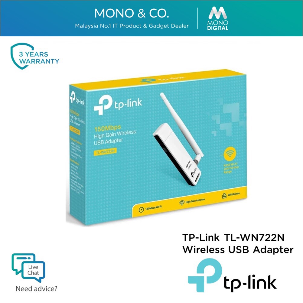 Tp Link High Gain Wireless N Usb Wireless Adapter Wifi Tl Wn722n Shopee Malaysia